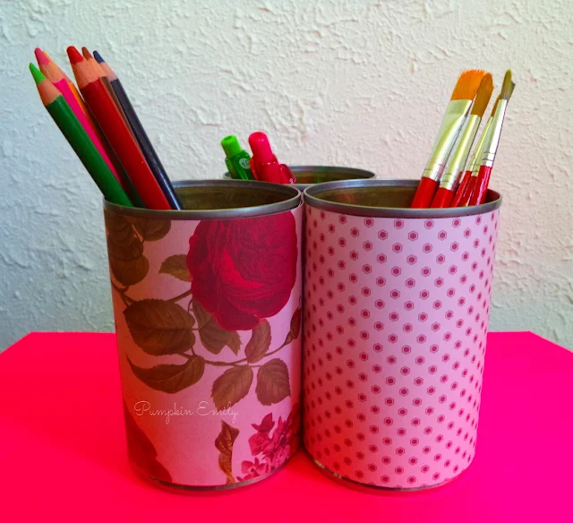 Hello! Today, I'm going to show you five ways to recycle tin cans for organizing or design your room. You will learn how to make a tin can stacked organizer, a tin can lantern, a tin can trash can, and two pencil can ideas.